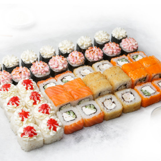 5. кири- маки - маки ролл с окунем, огурчиком - шапочка из "розового" крем-сыра