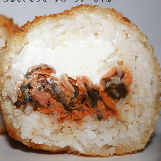 сладенький колобок с унаги-грибами, крем-сыром, полит унаги соусом и присыпан кунж...