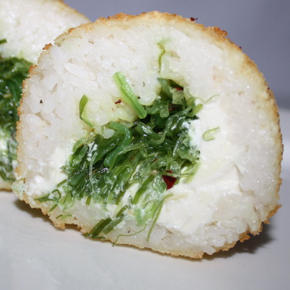 сладенький колобок с унаги-грибами, крем-сыром, полит унаги соусом и присыпан кунж...