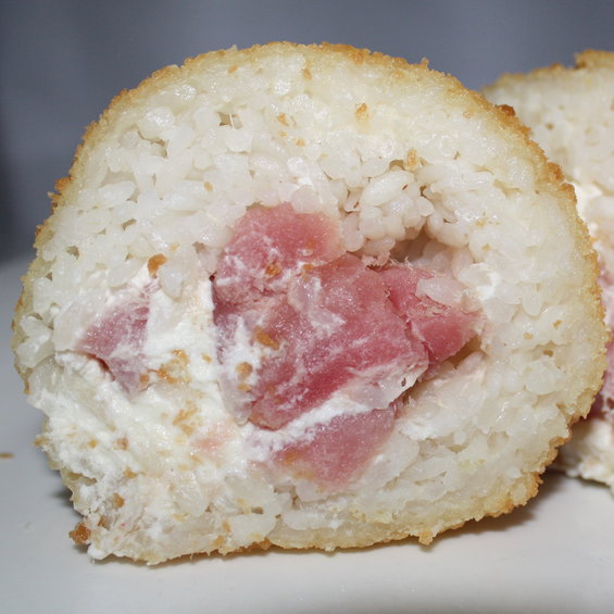 сладенький колобок с унаги-грибами, крем-сыром, полит унаги соусом и присыпан кунж...