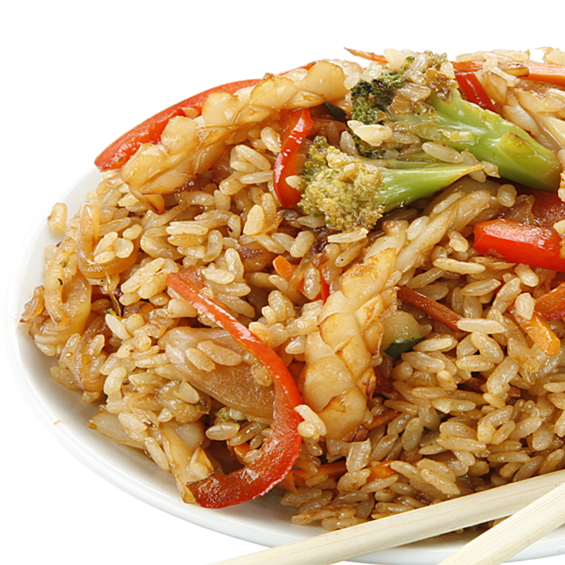 Рис с кальмаром, перцем, луком и мидиями в соусе