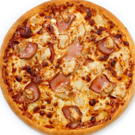 Бекон, курка копчена, соус bbq, сир чеддер, сир моцарела, ананас.