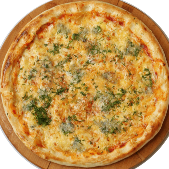 Зелень, філе куряче, курка копчена, соус цезарь, сир дор блю, сир моцарела.