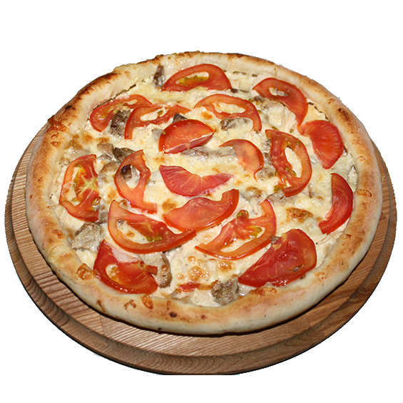 Сыр моцарелла, томаты, куриное филе, соус вершково-сирний, буженина.