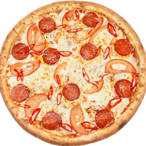 Перець чілі, ветчина, соус вершково-сирний, сир, салямі, помідори.
