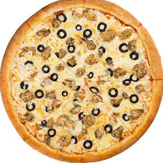 Лосось, соус вершково-сирний, сир дор блю, сир моцарела, маслини.