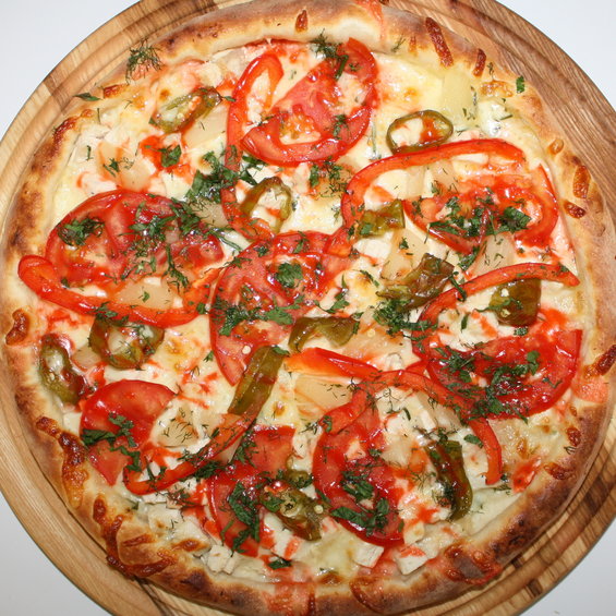 Перець чілі, зелень, соус чілі, соус вершково-сирний, помідори, філе куряче, ананас, перець болгарський.