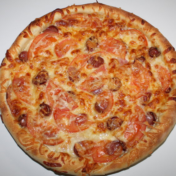 Сыр пармезан, соус вершково-сирний, сир, помідори, ковбаски мисливські, шинка.