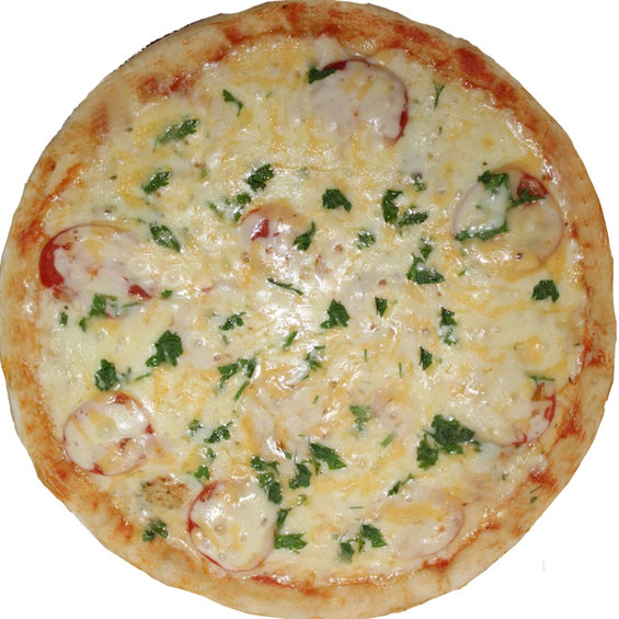 Зелень, соус томатний, сир, помідори, курка копчена.