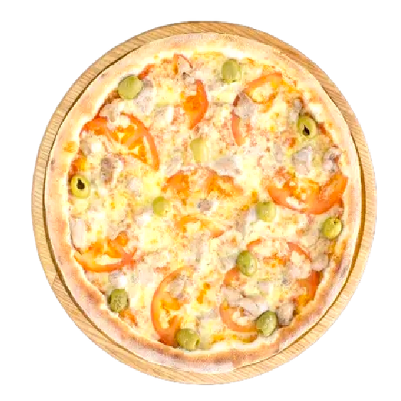 салямі, помідор, моцарела, дорблю, оливки. На вершковому соусі.