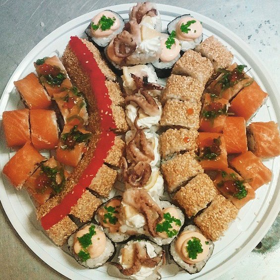 2.Флорида (сыр, тобико, огурец, лосось, чука, икра красная);