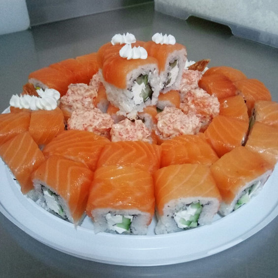 1. Филадельфия - лосось, крем-сыр, огурчик;