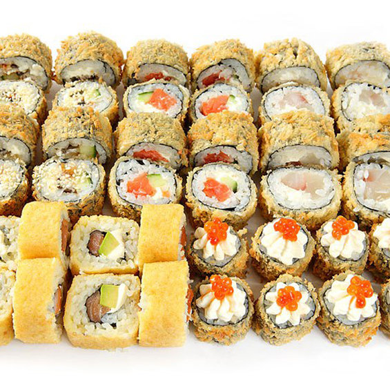 3. Бритни Бич - тунец, креветка, лосось, крем-сыр, красная икра